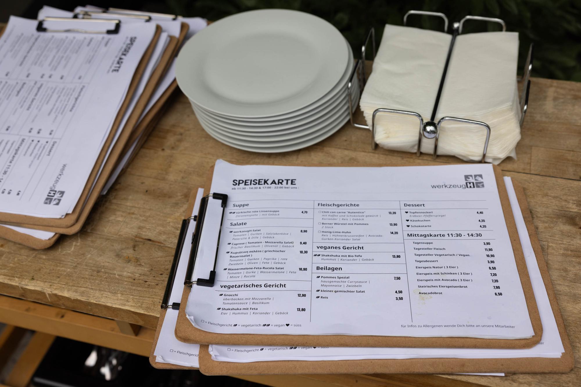 Es gibt Kaffee, Getränke und ein wechselndes Speisen-Angebot.